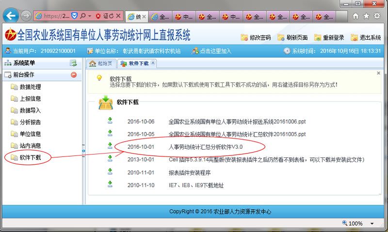 单机版统计汇总软件(2017V1.0)、培训课件、报表插件等都可从网上直报系统的“软件下载”栏目中获取。