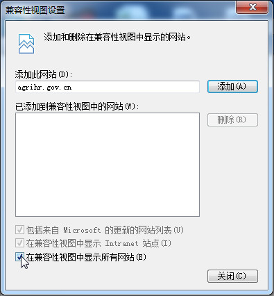 (3)选择“兼容性视图设置”,弹出对话框
