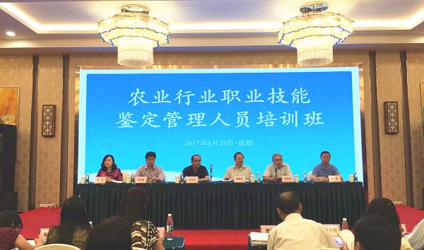 为加强农业职业技能鉴定管理人员队伍建设,进一步提高农业职业技能鉴定管理人员的业务水平,扎实推进农业技能人才队伍建设,2017年6月27-29日,农业部人力资源开发中心在成都举办农业行业职业技能鉴定管理人员培训班。农业部人力资源开发中心副主任吴金玉同志出席培训班并讲话,人力资源和社会保障部、四川省农业厅等有关领导和专家出席了开班仪式,来自全国农业系统的各省区市160余名学员参加了此次培训班。